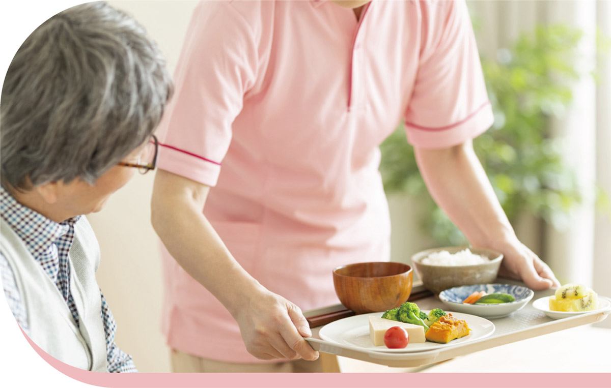 栄養バランスのとれた食事はもちろんのこと、旬の食材を使ったメニューはバリエーションも豊富で大変ご好評いただいています。また、お一人おひとりの状態に合わせたお食事も可能な限り対応いたします。